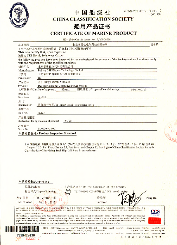 此次認(rèn)證的完成不僅標(biāo)志著山西汾西重工有限責(zé)任公司、北京賽思億電氣科技有限公司的直流組網(wǎng)產(chǎn)品已經(jīng)在國(guó)際上作為正式產(chǎn)品正式具備裝船使用的全部條件,更標(biāo)志著我們先于諸多國(guó)際巨頭公司率先在中國(guó)推動(dòng)了該項(xiàng)技術(shù)的應(yīng)用與發(fā)展。