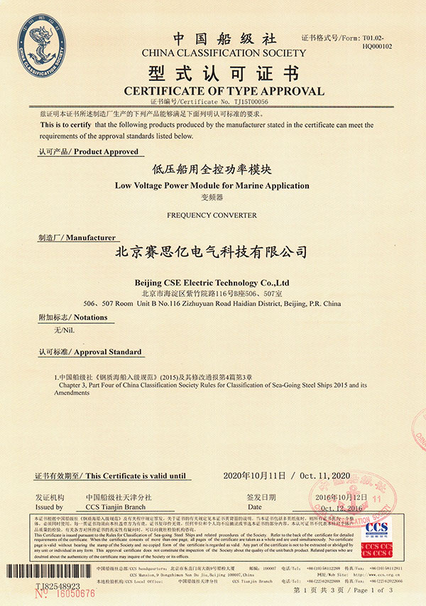 ▲CCS型式認可證書