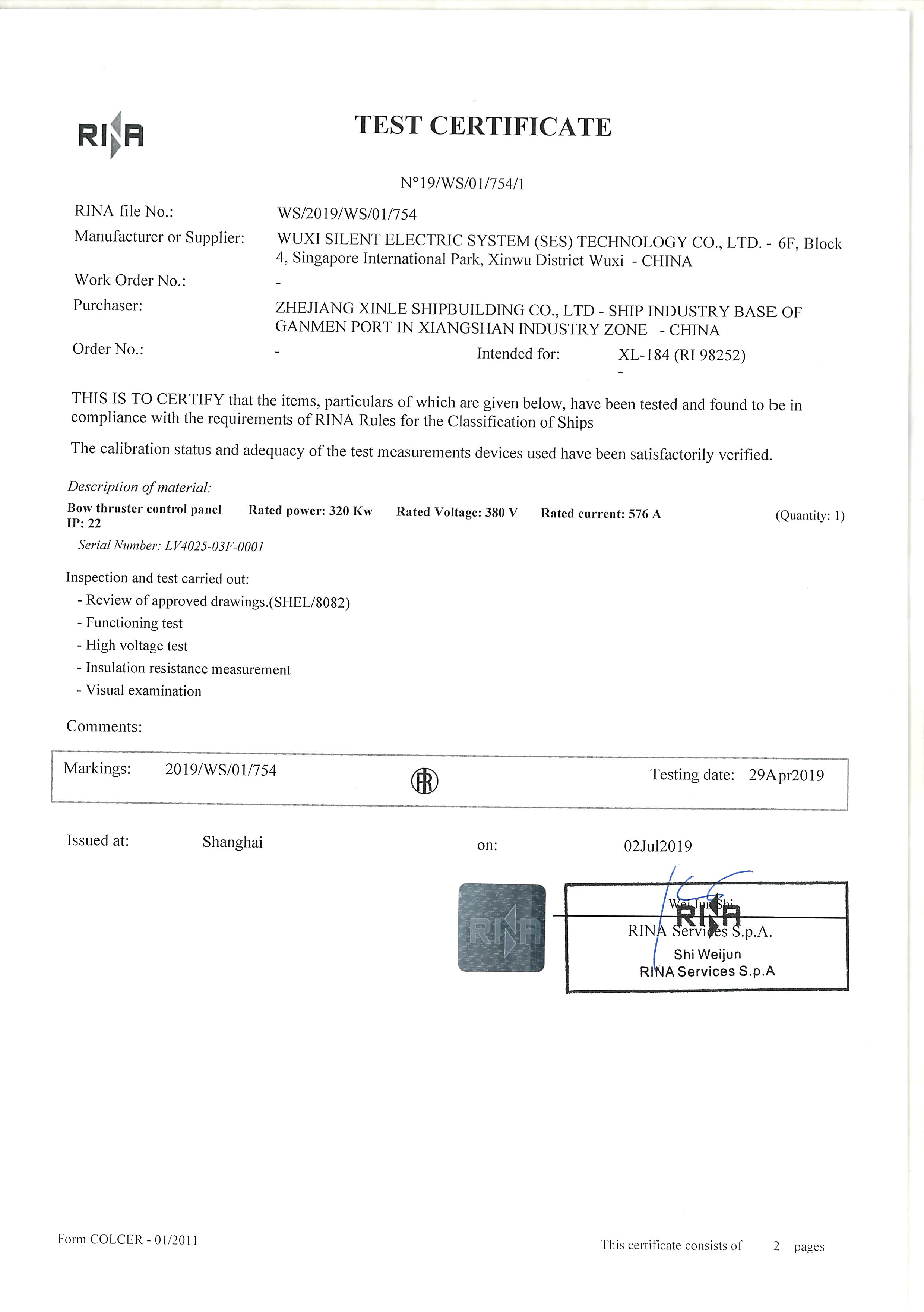 2020年04月10日上午,由浙江新樂(lè)造船股份有限公司為瑞士Nova Marine Carriers公司建造,裝備了賽思億艏側(cè)推國(guó)產(chǎn)推進(jìn)變頻電控設(shè)備和艏側(cè)推電機(jī)的6000噸雜貨船1號(hào)船“野牛”輪離開(kāi)公司碼頭前往寧波北侖大榭交船,該船舶的側(cè)推進(jìn)系統(tǒng)由無(wú)錫瑞風(fēng)船用推進(jìn)器有限公司集成。