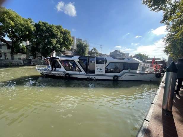 無錫古運河28客位 “樂游1號、樂游2號” 游船,由江蘇江南古運河旅游股份有限公司出資、常州晨光游艇制造有限公司建造,采用賽思億S-Renewable新能源動力系統(tǒng),該船船長14.80m,型寬3.60m,系統(tǒng)配置共接入2組鋰電池組,整船鋰電池容量共計215kWh,驅(qū)動2臺11kW的主推電機。目前已順利交付船東使用。