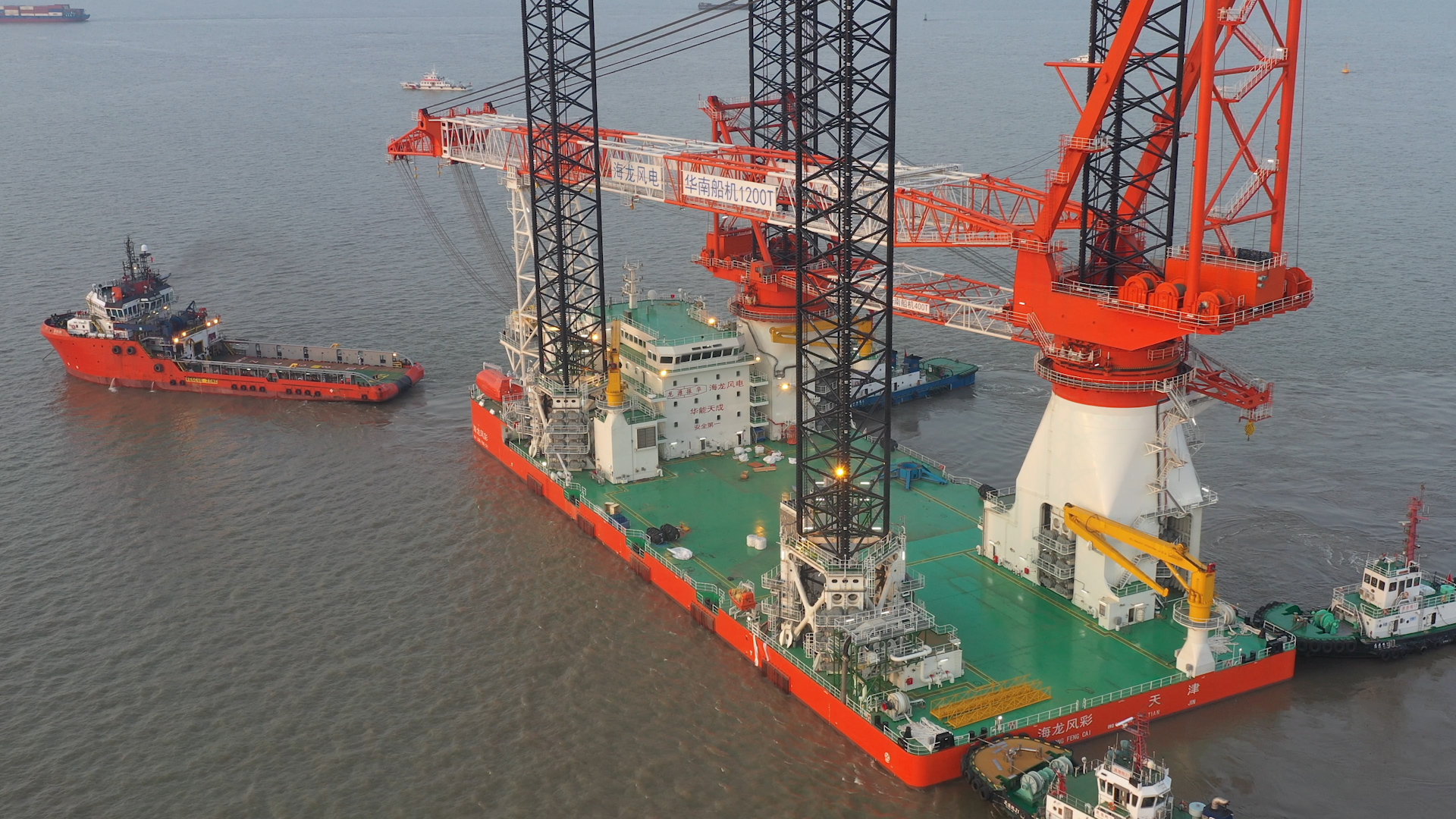 “海龍風(fēng)彩”號(hào)是由江蘇海龍風(fēng)電科技股份有限公司委托上海佳豪船海工程研究設(shè)計(jì)有限公司設(shè)計(jì)、無(wú)錫賽思億電氣科技有限公司動(dòng)力系統(tǒng)集成供貨、在招商局重工(江蘇)有限公司建造的一艘國(guó)產(chǎn)大容量中壓海上自升自航式風(fēng)電安裝平臺(tái)。船東江蘇海龍風(fēng)電科技股份有限公司是國(guó)內(nèi)知名的風(fēng)電安裝服務(wù)商,其旗下的“海龍瑞彩”號(hào)風(fēng)電安裝平臺(tái)日前創(chuàng)下國(guó)內(nèi)吊裝記錄,吊裝效率領(lǐng)跑中國(guó)南海。