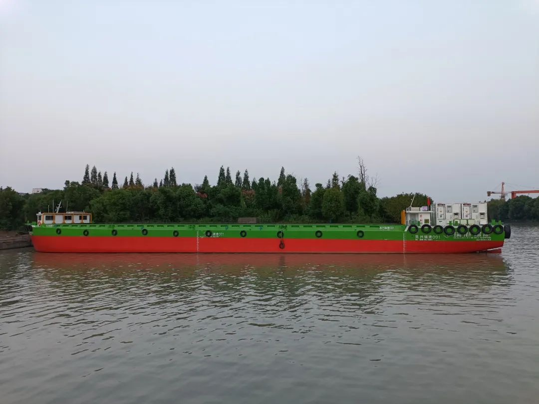 該系列船舶船長79.94米、寬12.65米,設(shè)計(jì)航速 14.0km/h,續(xù)航里程 220km,總裝載量超過2400噸,每船系統(tǒng)配備中船賽思億2個(gè)標(biāo)準(zhǔn)集裝箱式電源、搭載中船賽思億S-Renewable全電力推進(jìn)系統(tǒng),零排放、低噪音。相較于同等級(jí)燃煤貨船,每年可減少碳排放1920噸,將有力推動(dòng)內(nèi)河航運(yùn)的綠色轉(zhuǎn)型,為商船電動(dòng)化發(fā)展提速提供有力助推。