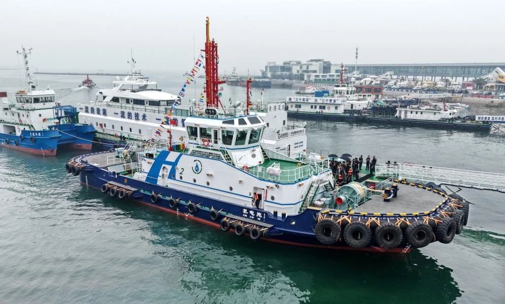 6月26日,馬力最大、鋰電池容量最大的全國首艘氫電拖輪“氫電拖1”輪在山東港口青島港正式入列。“氫電拖1”輪創(chuàng)新采用全球首創(chuàng)的 “氫燃料電池+液冷鋰電池”混合動力模式、北斗集成系統(tǒng)、全自動智能岸基充電等技術(shù),填補(bǔ)了國內(nèi)多項空白。